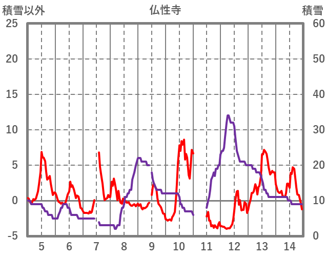 | 日 | 時 | 気温 | 降水 | 風向/風速 | 日照 | 積雪 | 降雪 |