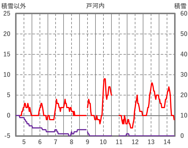 | 日 | 時 | 気温 | 降水 | 風向/風速 | 日照 | 積雪 | 降雪 |