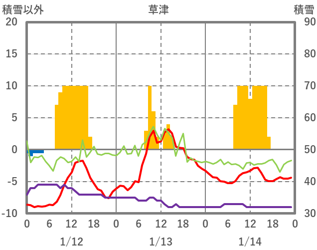 | 日 | 時 | 気温 | 降水 | 風向/風速 | 日照 | 積雪 | 降雪 |