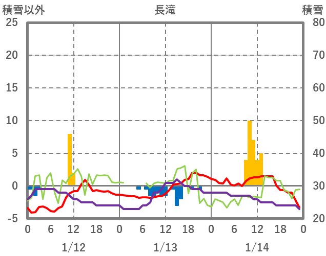| 日 | 時 | 気温 | 降水 | 風向/風速 | 日照 | 積雪 | 降雪 |