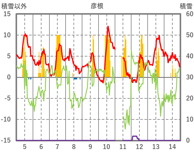 | 日 | 時 | 気温 | 降水 | 風向/風速 | 日照 | 積雪 | 降雪 |