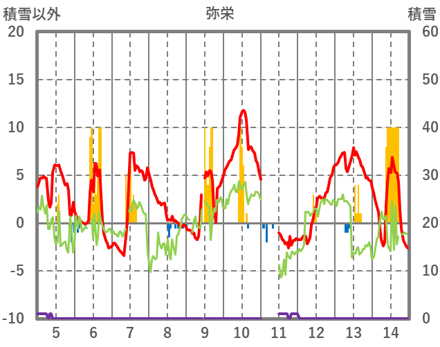 | 日 | 時 | 気温 | 降水 | 風向/風速 | 日照 | 積雪 | 降雪 |