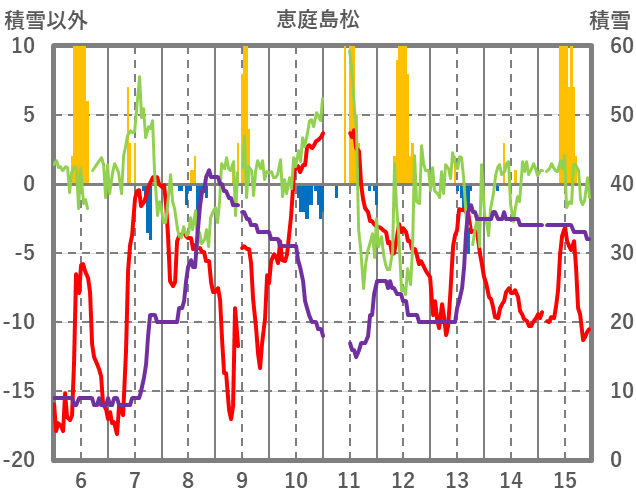 | 日 | 時 | 気温 | 降水 | 風向/風速 | 日照 | 積雪 | 降雪 |