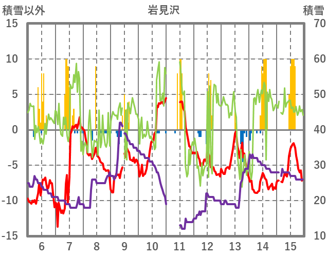 | 日 | 時 | 気温 | 降水 | 風向/風速 | 日照 | 積雪 | 降雪 |