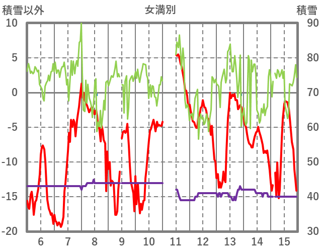 | 日 | 時 | 気温 | 降水 | 風向/風速 | 日照 | 積雪 | 降雪 |