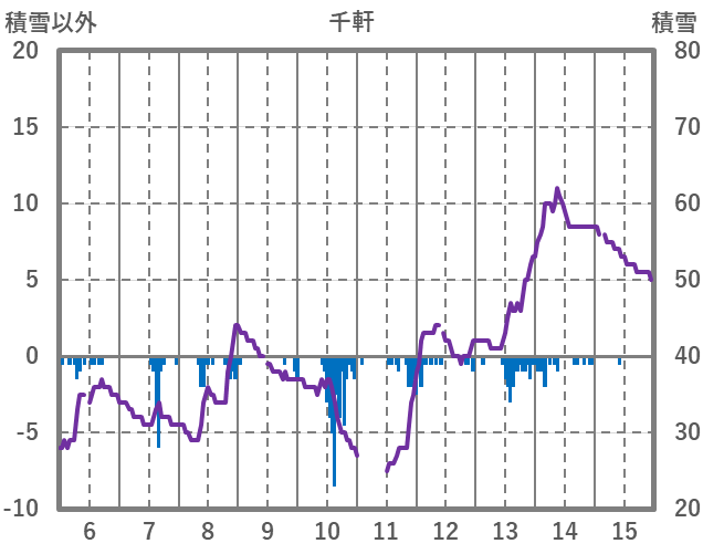 | 日 | 時 | 気温 | 降水 | 風向/風速 | 日照 | 積雪 | 降雪 |