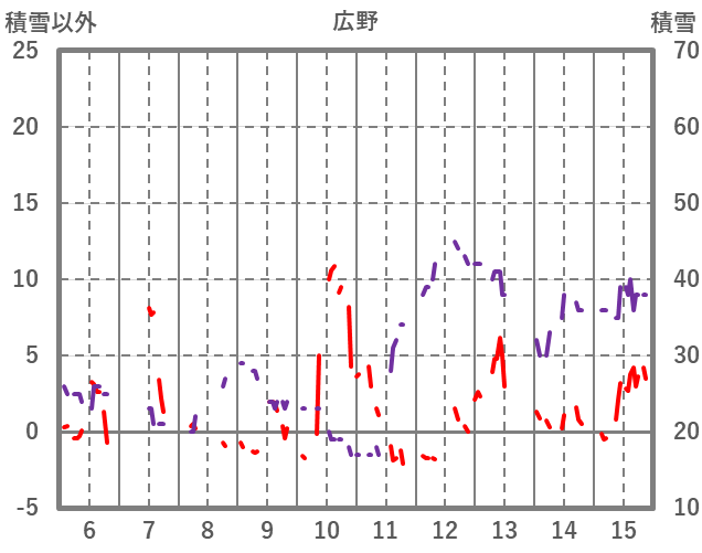 | 日 | 時 | 気温 | 降水 | 風向/風速 | 日照 | 積雪 | 降雪 |