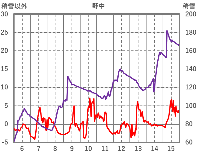 | 日 | 時 | 気温 | 降水 | 風向/風速 | 日照 | 積雪 | 降雪 |