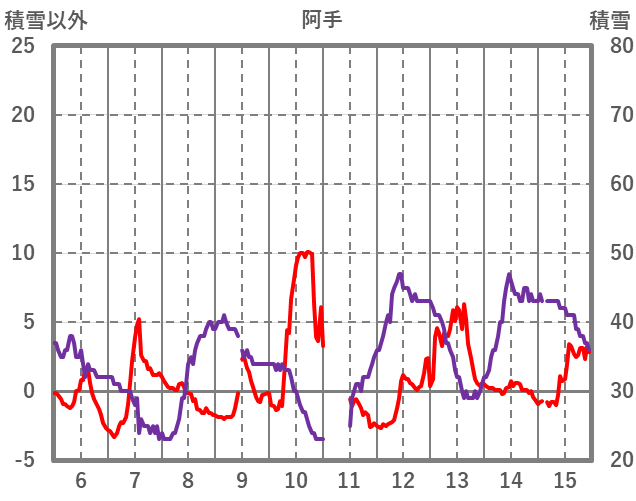 | 日 | 時 | 気温 | 降水 | 風向/風速 | 日照 | 積雪 | 降雪 |