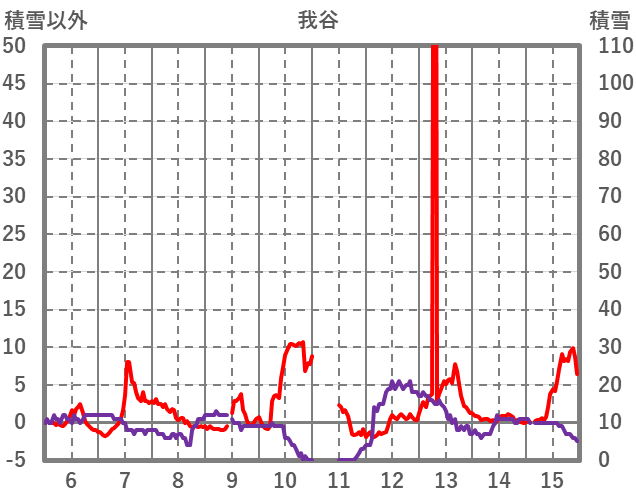 | 日 | 時 | 気温 | 降水 | 風向/風速 | 日照 | 積雪 | 降雪 |