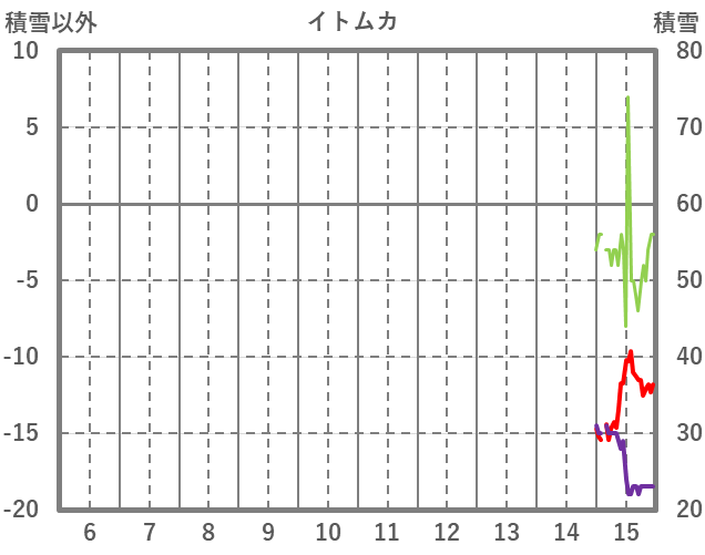 | 日 | 時 | 気温 | 降水 | 風向/風速 | 日照 | 積雪 | 降雪 |