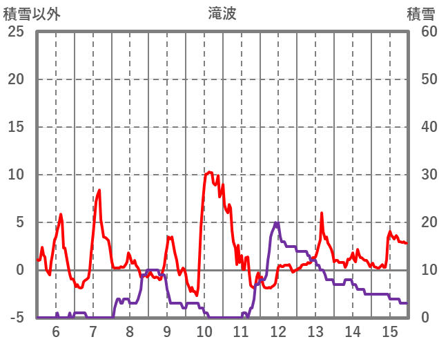 | 日 | 時 | 気温 | 降水 | 風向/風速 | 日照 | 積雪 | 降雪 |