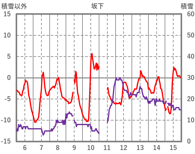 | 日 | 時 | 気温 | 降水 | 風向/風速 | 日照 | 積雪 | 降雪 |