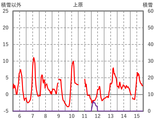| 日 | 時 | 気温 | 降水 | 風向/風速 | 日照 | 積雪 | 降雪 |