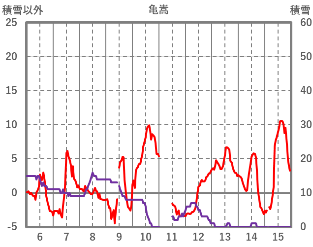 | 日 | 時 | 気温 | 降水 | 風向/風速 | 日照 | 積雪 | 降雪 |