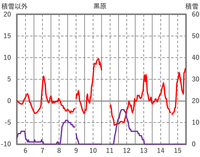 | 日 | 時 | 気温 | 降水 | 風向/風速 | 日照 | 積雪 | 降雪 |