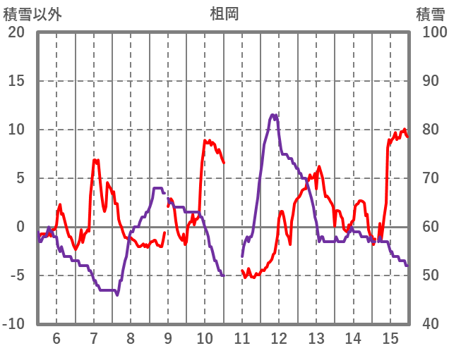 | 日 | 時 | 気温 | 降水 | 風向/風速 | 日照 | 積雪 | 降雪 |