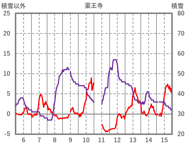 | 日 | 時 | 気温 | 降水 | 風向/風速 | 日照 | 積雪 | 降雪 |