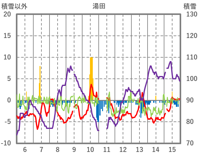 | 日 | 時 | 気温 | 降水 | 風向/風速 | 日照 | 積雪 | 降雪 |