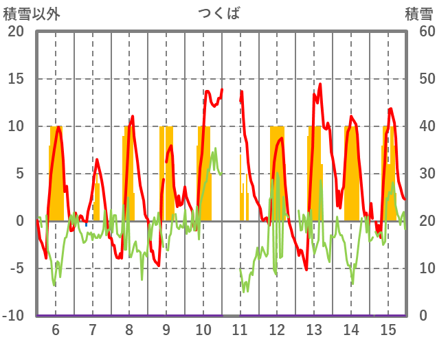 | 日 | 時 | 気温 | 降水 | 風向/風速 | 日照 | 積雪 | 降雪 |