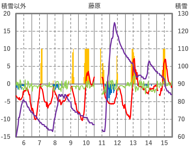| 日 | 時 | 気温 | 降水 | 風向/風速 | 日照 | 積雪 | 降雪 |
