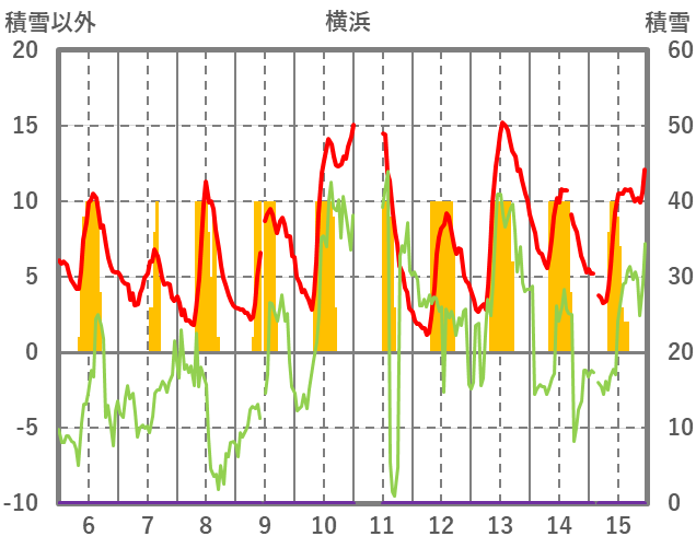 | 日 | 時 | 気温 | 降水 | 風向/風速 | 日照 | 積雪 | 降雪 |