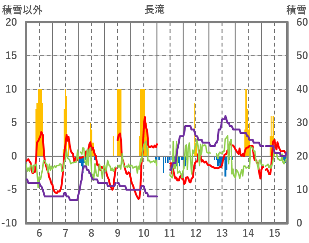 | 日 | 時 | 気温 | 降水 | 風向/風速 | 日照 | 積雪 | 降雪 |