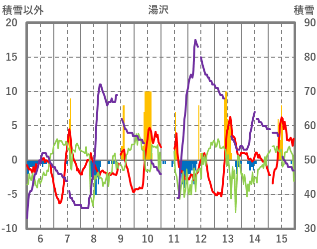 | 日 | 時 | 気温 | 降水 | 風向/風速 | 日照 | 積雪 | 降雪 |