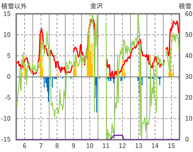 | 日 | 時 | 気温 | 降水 | 風向/風速 | 日照 | 積雪 | 降雪 |