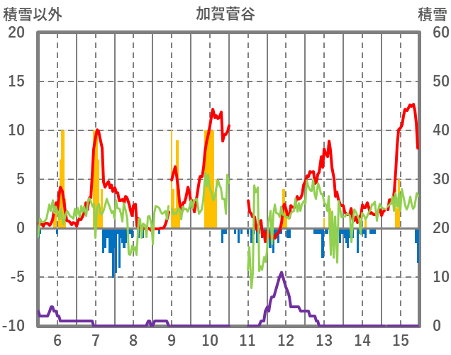 | 日 | 時 | 気温 | 降水 | 風向/風速 | 日照 | 積雪 | 降雪 |