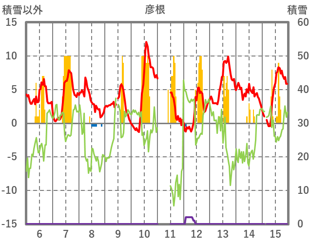 | 日 | 時 | 気温 | 降水 | 風向/風速 | 日照 | 積雪 | 降雪 |