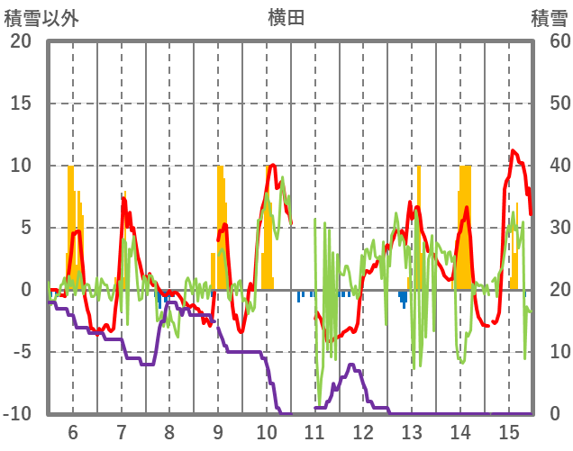 | 日 | 時 | 気温 | 降水 | 風向/風速 | 日照 | 積雪 | 降雪 |