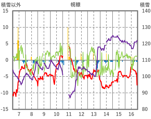 | 16 | -4.6 | 0.5 | NNW/3.2 | 0 | 100 | 0 | |