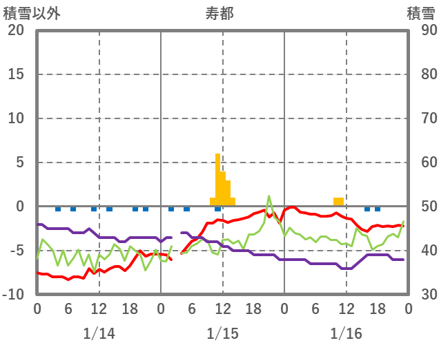 | 日 | 時 | 気温 | 降水 | 風向/風速 | 日照 | 積雪 | 降雪 |