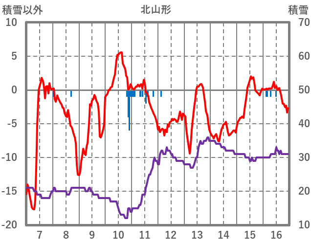 | 日 | 時 | 気温 | 降水 | 風向/風速 | 日照 | 積雪 | 降雪 |