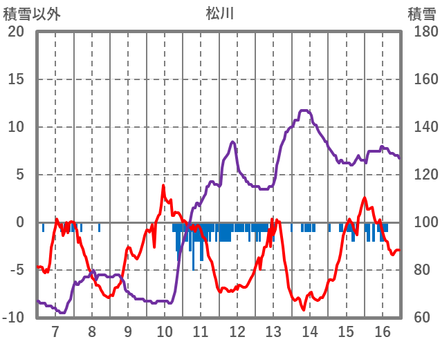 | 日 | 時 | 気温 | 降水 | 風向/風速 | 日照 | 積雪 | 降雪 |