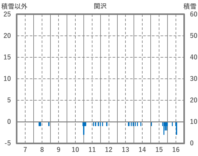 | 日 | 時 | 気温 | 降水 | 風向/風速 | 日照 | 積雪 | 降雪 |