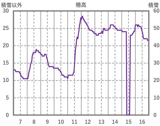 | 日 | 時 | 気温 | 降水 | 風向/風速 | 日照 | 積雪 | 降雪 |