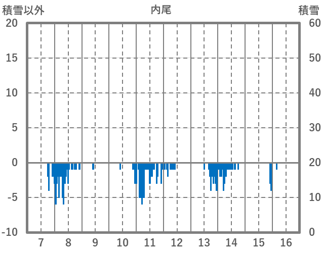 | 日 | 時 | 気温 | 降水 | 風向/風速 | 日照 | 積雪 | 降雪 |