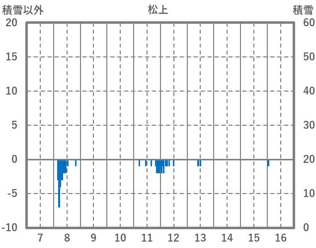 | 日 | 時 | 気温 | 降水 | 風向/風速 | 日照 | 積雪 | 降雪 |