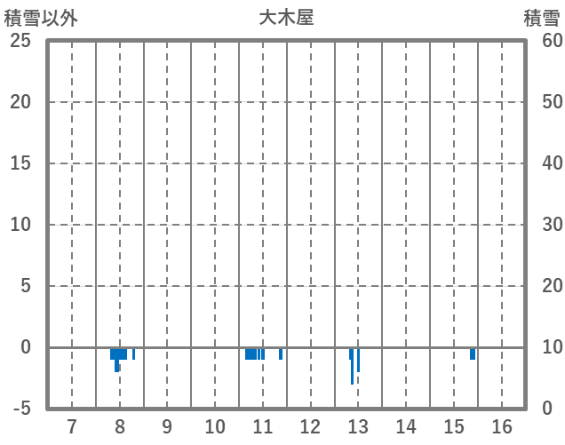 | 日 | 時 | 気温 | 降水 | 風向/風速 | 日照 | 積雪 | 降雪 |