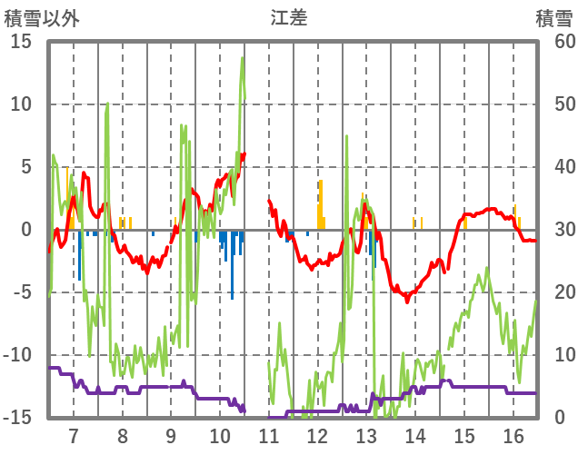| 日 | 時 | 気温 | 降水 | 風向/風速 | 日照 | 積雪 | 降雪 |