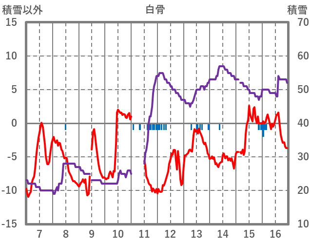 | 日 | 時 | 気温 | 降水 | 風向/風速 | 日照 | 積雪 | 降雪 |