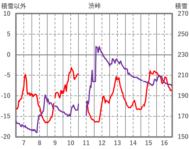 | 日 | 時 | 気温 | 降水 | 風向/風速 | 日照 | 積雪 | 降雪 |