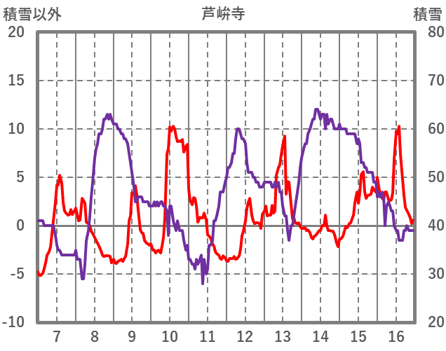 | 日 | 時 | 気温 | 降水 | 風向/風速 | 日照 | 積雪 | 降雪 |