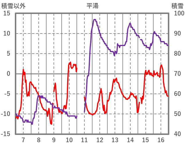 | 日 | 時 | 気温 | 降水 | 風向/風速 | 日照 | 積雪 | 降雪 |