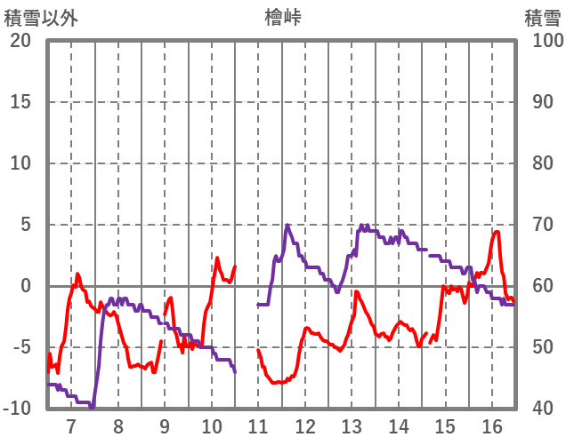 | 日 | 時 | 気温 | 降水 | 風向/風速 | 日照 | 積雪 | 降雪 |