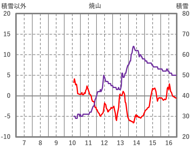 | 日 | 時 | 気温 | 降水 | 風向/風速 | 日照 | 積雪 | 降雪 |
