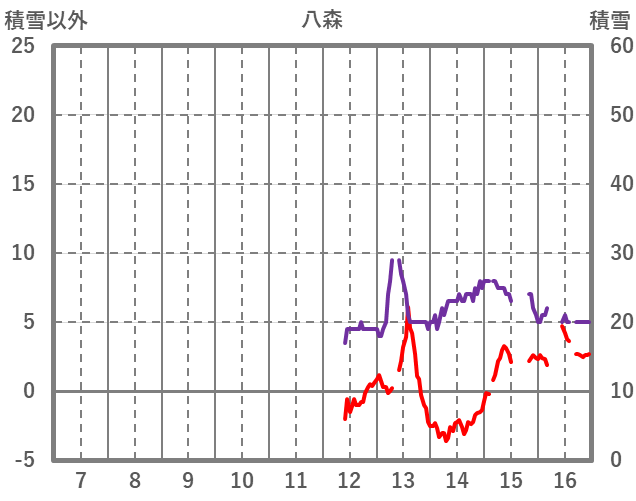 | 日 | 時 | 気温 | 降水 | 風向/風速 | 日照 | 積雪 | 降雪 |
