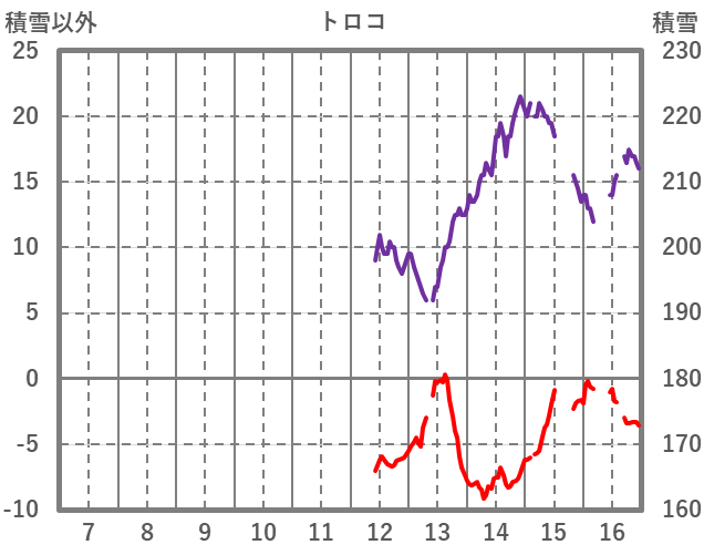 | 日 | 時 | 気温 | 降水 | 風向/風速 | 日照 | 積雪 | 降雪 |